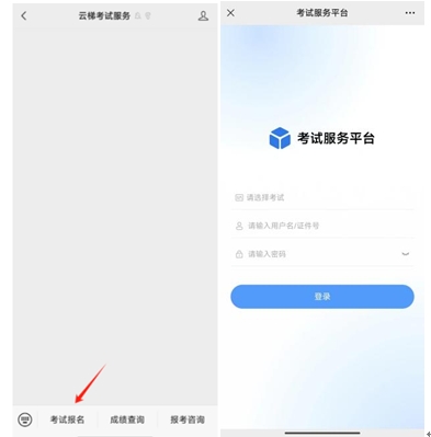 2、點(diǎn)擊考試報(bào)名,選擇對應(yīng)考試登錄賬號