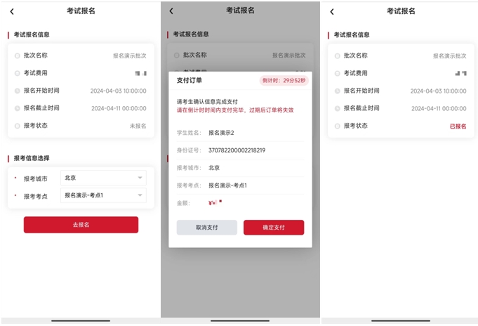 30分鐘內(nèi)訂單有效,超出時(shí)間后訂單將自動取消,學(xué)生可重新報(bào)名;